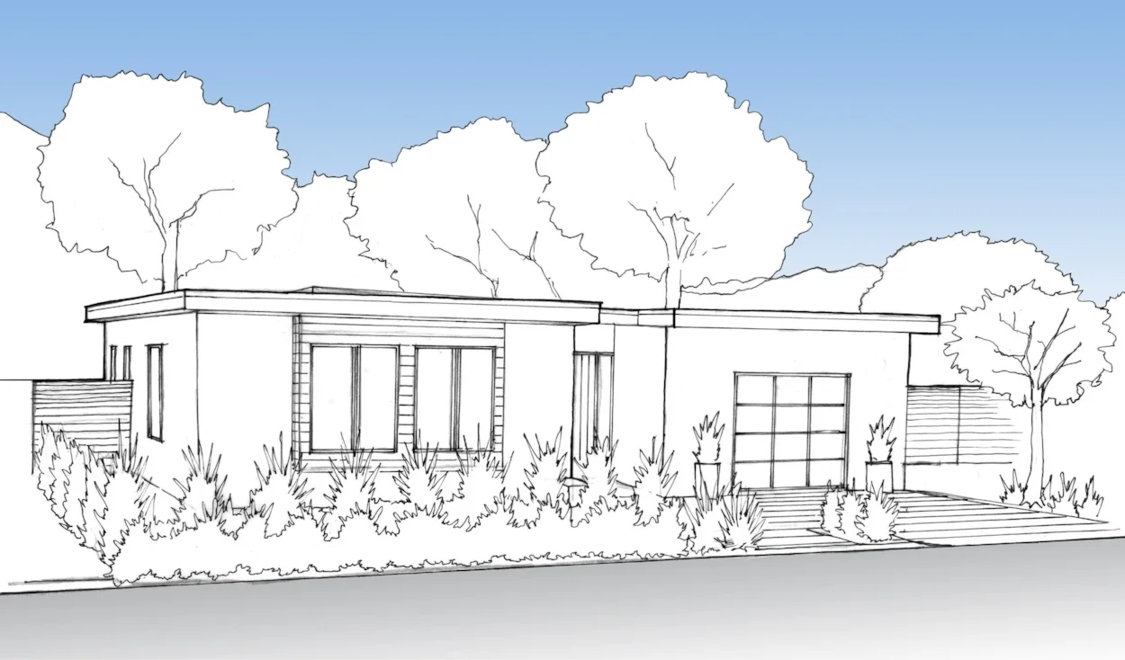 This One-Story 4 bedroom, 3 bathroom contemporary bungalow exhibits clean lines and warm, contemporary materials. Stucco and stained cedar are accented by stained concrete and dark anodized aluminum windows. The great room of the home features the tenets of contemporary California living, with a wall of multi-slide doors that directly connect the indoors and outdoors. Expected completion April 2018.